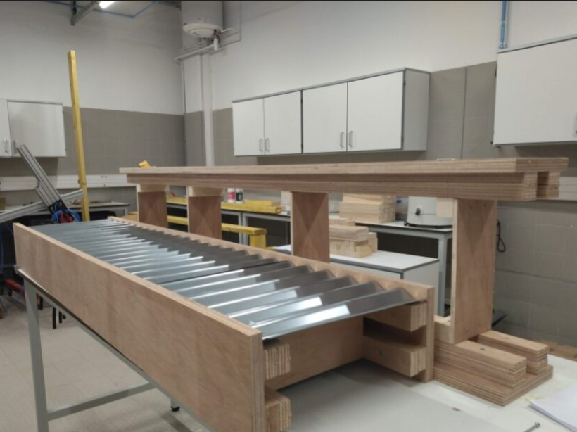 Les 11 et 18 janvier, nous avons eu la chance de réaliser des essais mécaniques sur les prototypes que nous avions fabriqués, grâce à notre partenaire, le laboratoire Navier, de l’École Nationale des Ponts et Chaussées. Ces essais vont nous permettre de vérifier les performances structurelles et les méthodes d’assemblages des modules en tôle acier et bois contreplaqué, qui sont un élément central du pavillon.