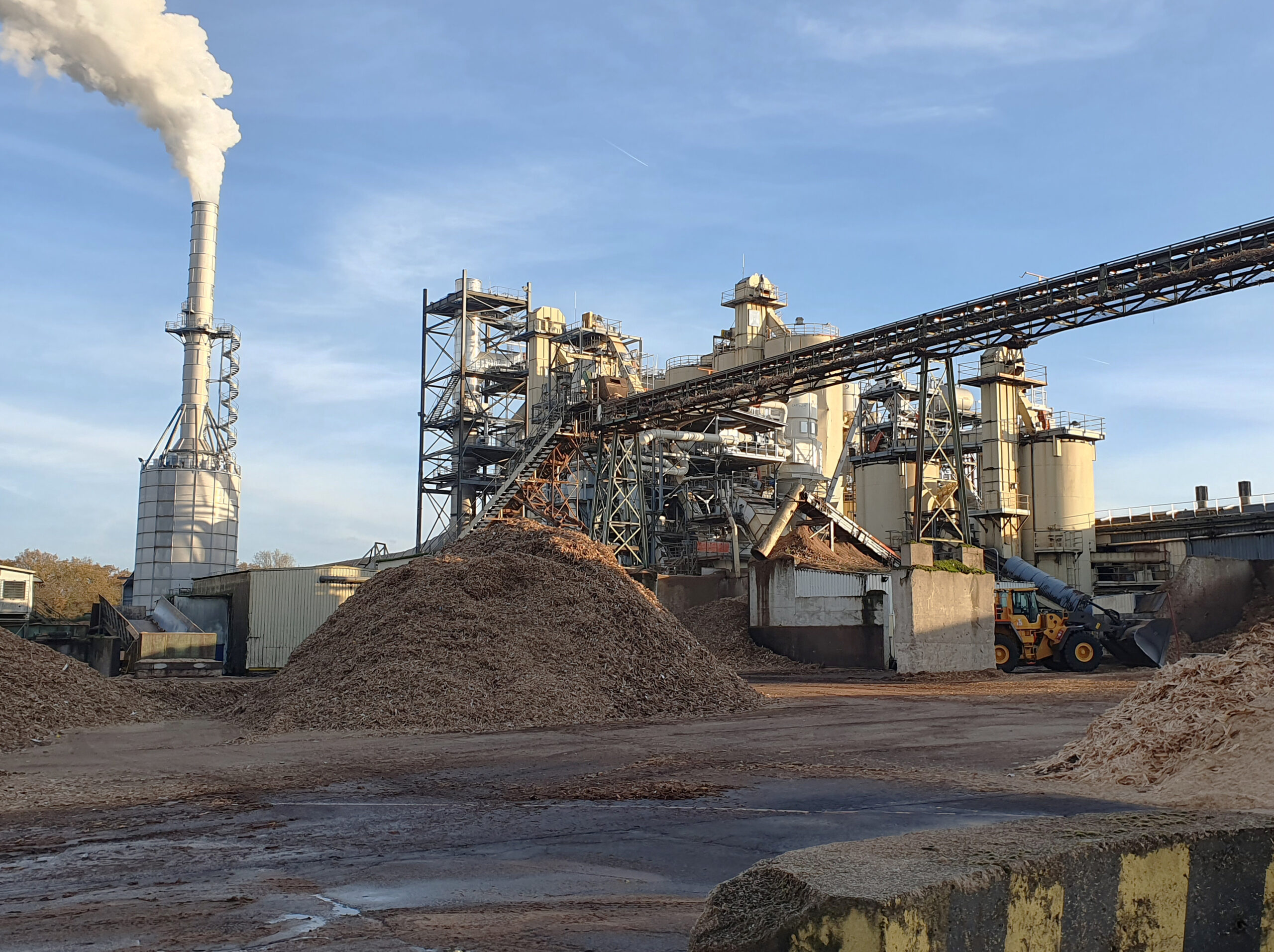Chaque jour, ce sont 180 camions de bois qui sont acheminés et 120 camions de panneaux de process qui sortent des lignes de production. L’usine fonctionne en continu en raison de l’inertie des machines, qui demandent beaucoup de temps pour être mises en température ou refroidies. Le travail du bois très sec entraînant des départs d’incendie fréquents, des pompiers sont présents dans chaque équipe pour intervenir au plus vite si nécessaire.
