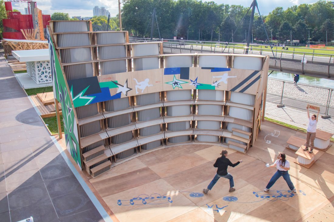 Le pavillon conçu par l’École d’architecture Paris-Malaquais est celui de la Fédération française d’escrime.