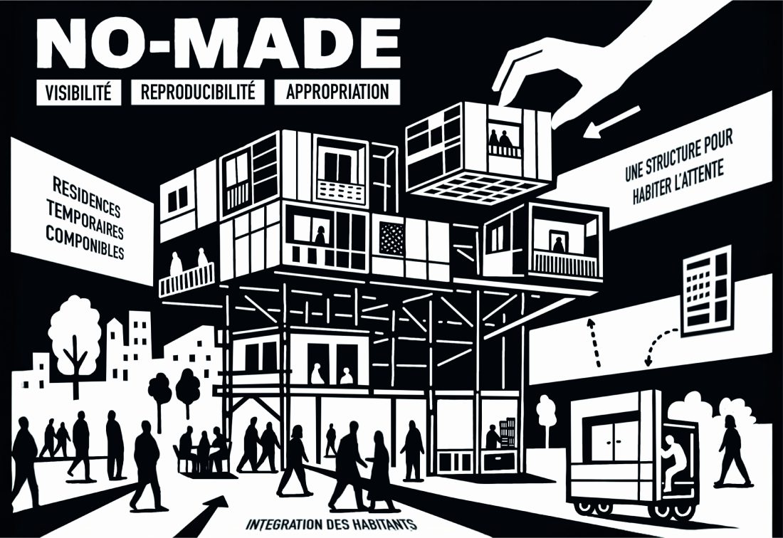 NO-MADE est un projet manifeste conçu pour répondre à la crise de l’accueil urbain, luttant contre l’invisibilisation systémique des exclus. Visible, reproductible et appropriable, il s’installe dans les interstices de la ville pour offrir une structure habitable, évolutive et co-construite. L’échafaudage devient trame porteuse d’une architecture ouverte, où chaque usager compose son propre espace, rompant avec les logiques standardisées. Le rez-de-chaussée, poreux et traversant, invite le quartier à entrer, à échanger, à s’impliquer. Le projet prend forme à titre de prototype sur le site des Halles Pouchard à Pantin, une ancienne usine de tubes en acier désaffectée. Il propose une alternative aux limites de l’urbanisme transitoire, qui dépasse la seule temporalité pour revendiquer une prise de position spatiale et politique. L’architecture peut-elle devenir un outil de contestation et d’engagement collectif ?
