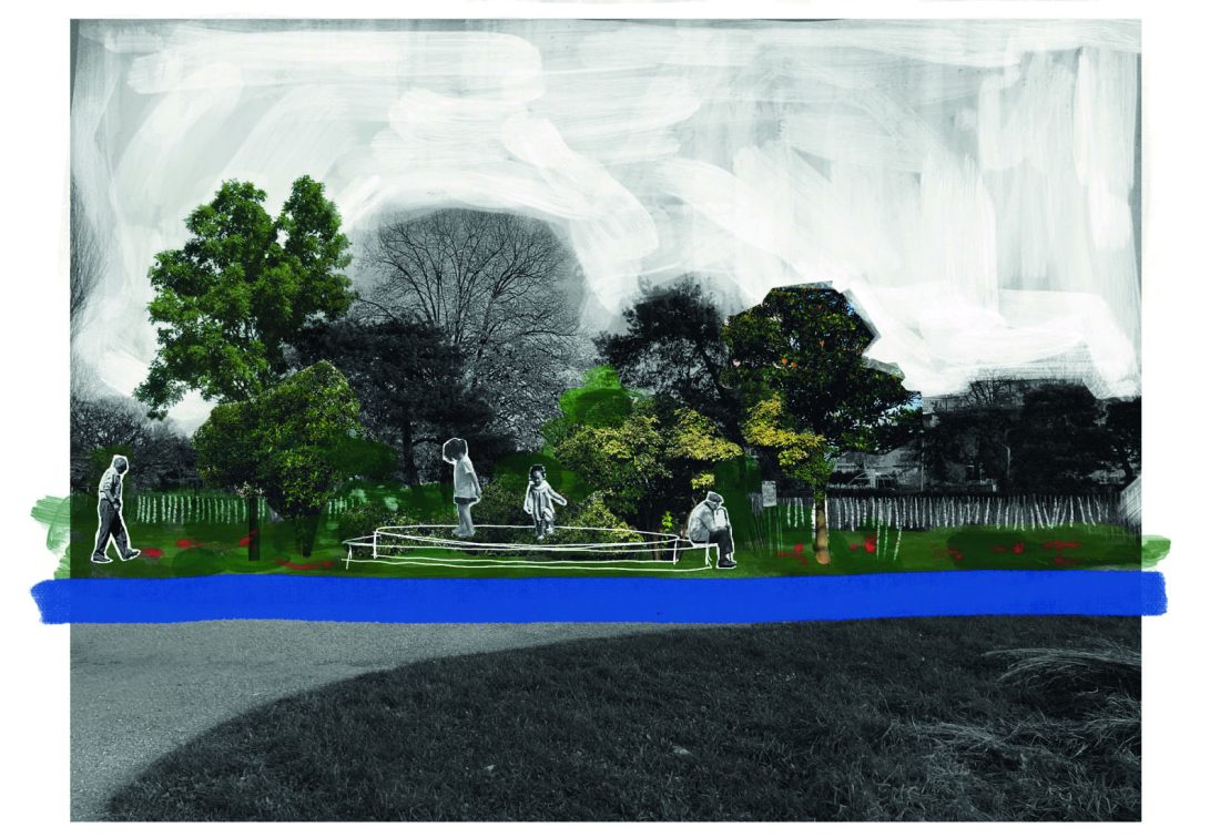 Le projet propose de revaloriser son tracé à travers un parcours de fraîcheur où un milieu naturel réinvente la ville : un parc linéaire reliant le parc Georges Valbon à la Seine, rythmé par une succession de jardins. Tantôt visible, tantôt suggérée, la rivière devient le support d’une nouvelle narration urbaine. Ce « fil bleu », discret mais essentiel, révèle la place des bien communs, en ouvrant des espaces de ren-contre, de vie collective et d’engagement citoyen.
