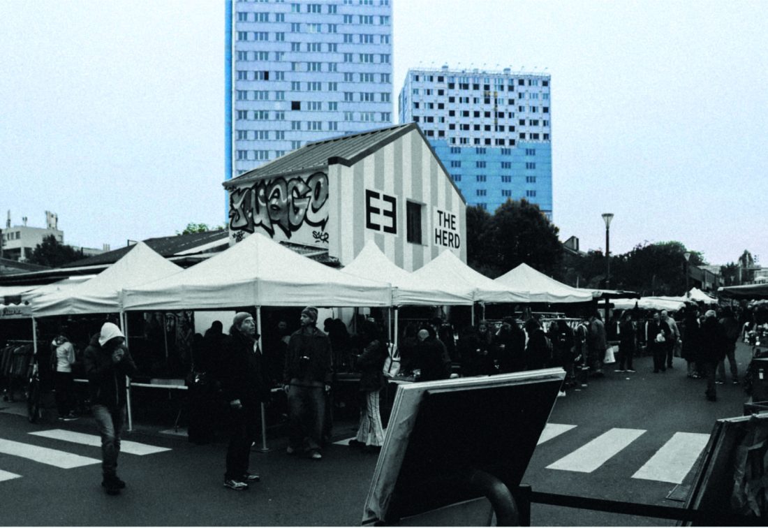 Voici les tours du Boute-en-Train à Saint-Ouen. Perchées au cœur du marché aux puces, ces grandes silhouettes de béton, érigées en 1964 par l’architecte Raymond Lopez, se dressent aujourd’hui comme des vestiges, marquées par le temps et les tentatives de réanimations. Vidées de leurs habitants, ce sont désormais deux géants silencieux, coupés de la vie qui les entoure. Pourtant, ils sont le témoignage d’une époque, d’une vision moderniste et d’un espoir de renouveau pour la banlieue parisienne en devenir.