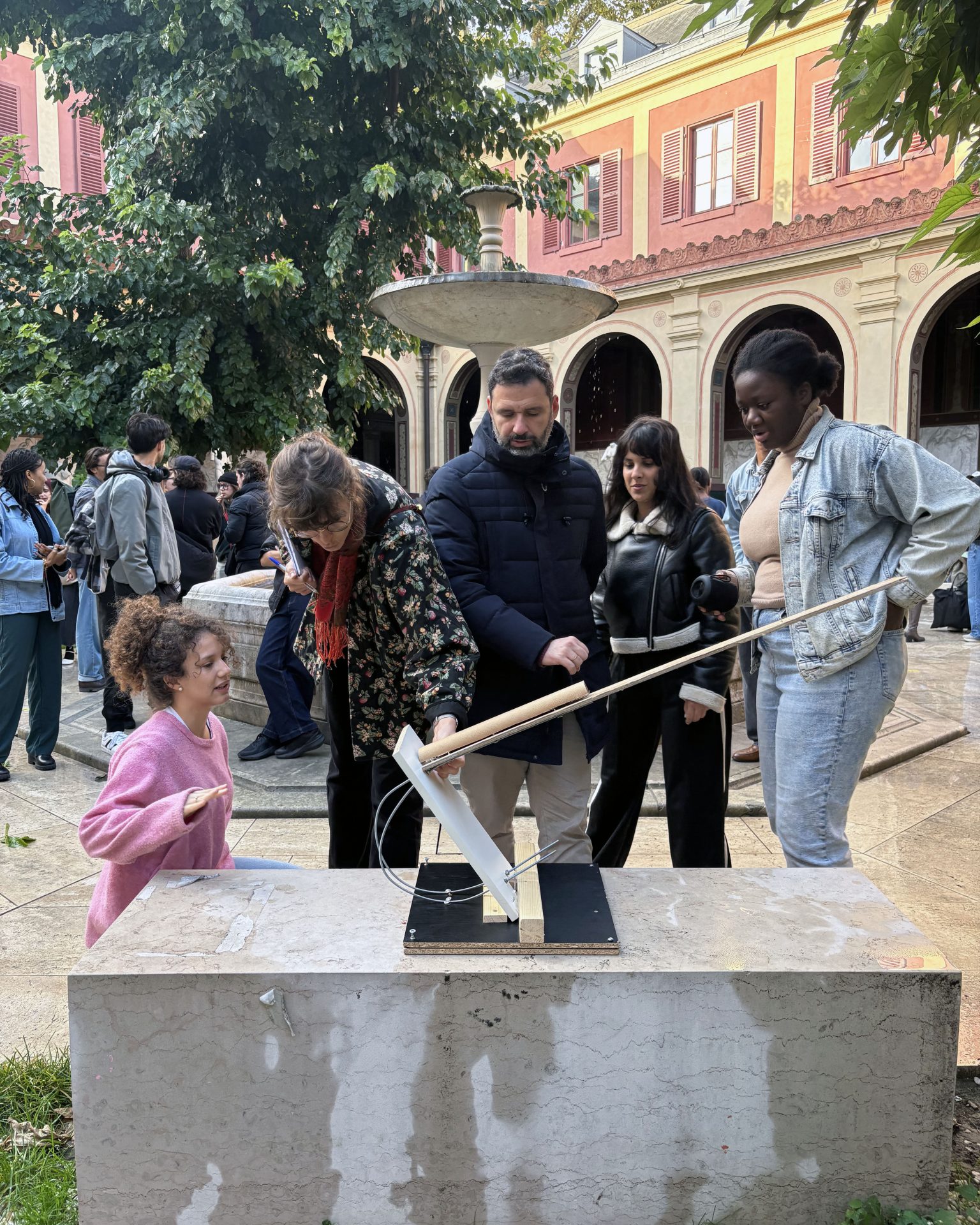 Les étudiantes et étudiants de licence 3 ont eu trois semaines pour fabriquer une console à partir de matériaux recyclés en usant uniquement d’assemblages mécaniques (nœuds, vis, clous, cales, frottement).