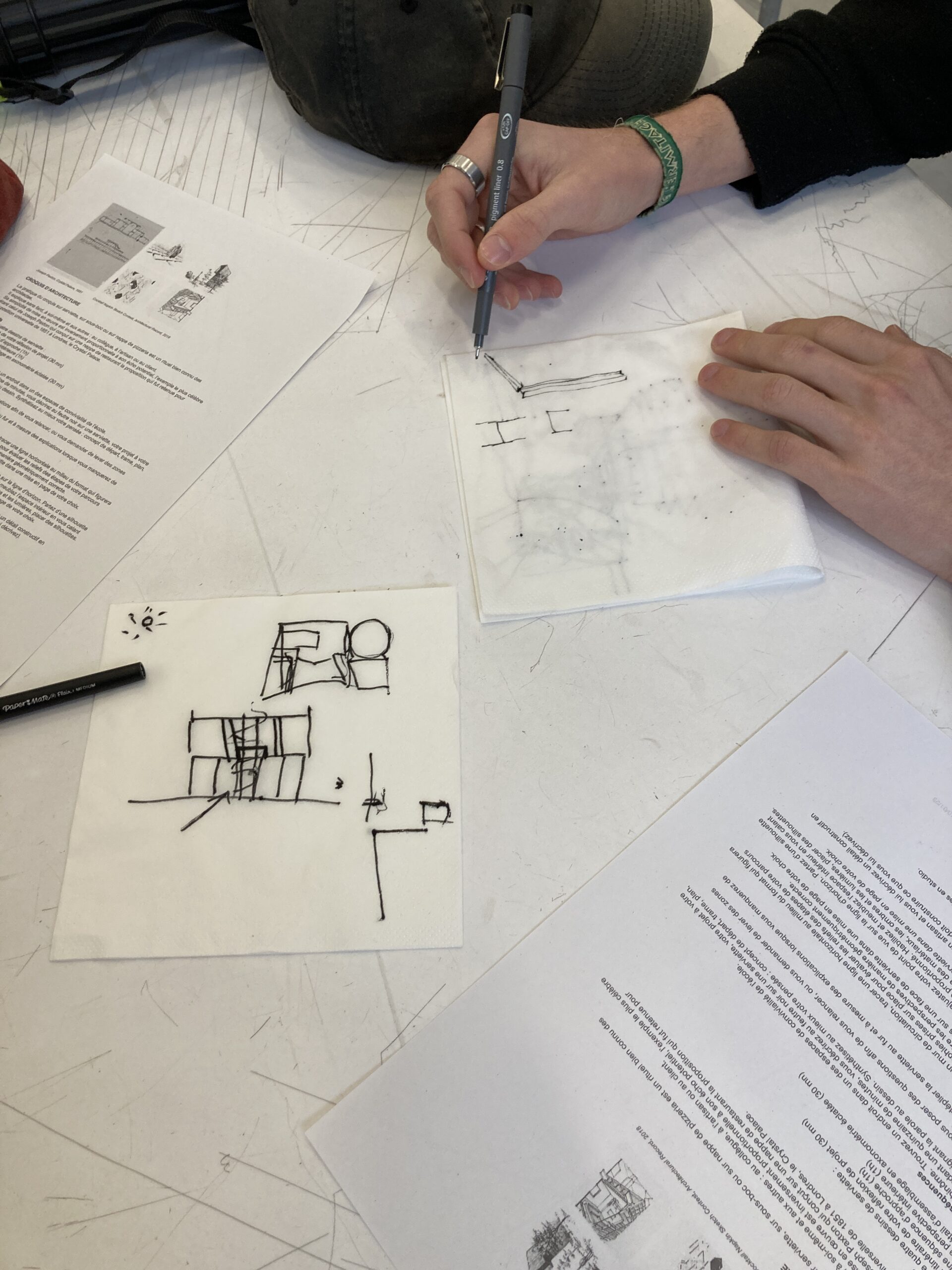 Un atelier consacré au croquis de projet pour des étudiants de licence 2 leur proposait de réexaminer leur bâtiment en associant la parole au dessin dans un jeu de rôle.